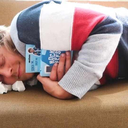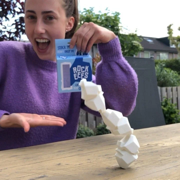 When you’ve mastered the basics of beating gravity, it’s time to call in some friends and challenge them for a 1 vs 1 game. You both take your Rockeees and start building one pile. You both go on turns. You drop the pile, you lose. Get more Rockeees and you can build higher and higher.